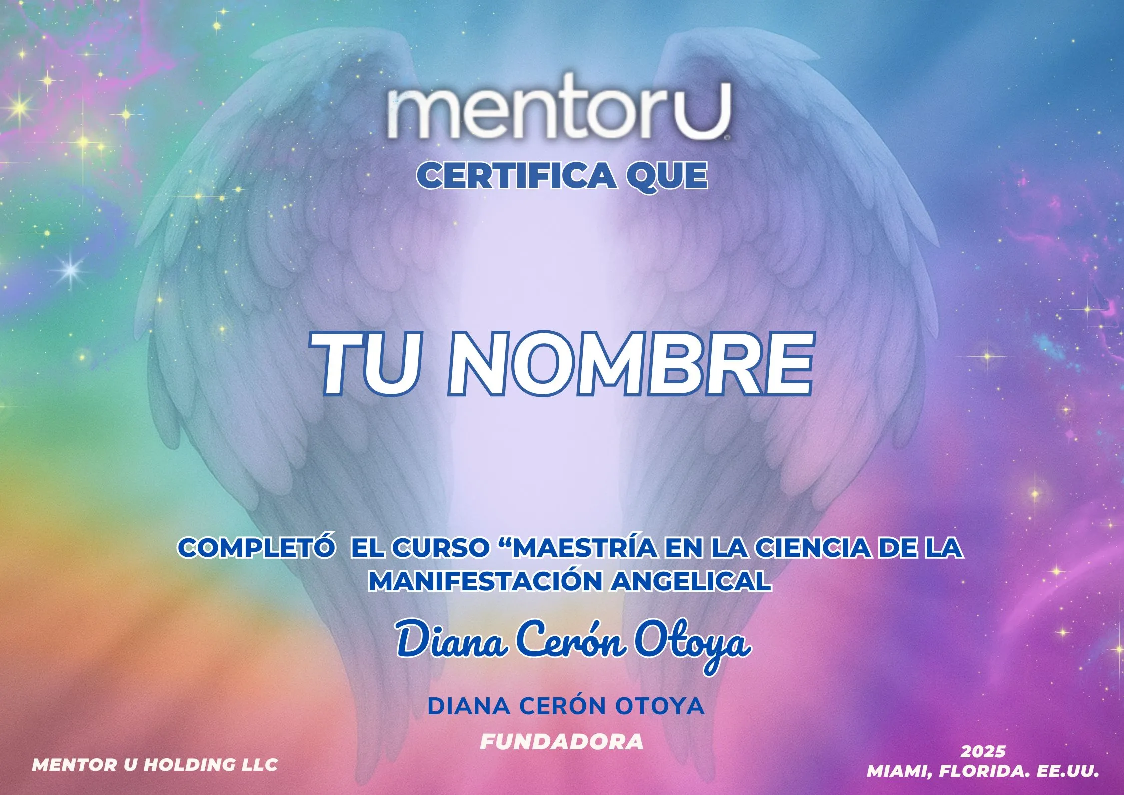 Al graduarte recibirás tu Certificado Oficial de Maestría en Ciencia de Manifestación Angelical: